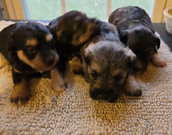 message mls2012 about this ad I only have females still available. mom mini schnauzer, dad mini poodle. born 10/16/25, ready to go 12/11/25. Parents on premises. Great family dogs. should be aprox 20lbs when grown. non shedding. Price is $800, will take deposit of $100 to reserve one. CALL 410-9841716 |