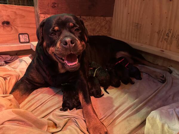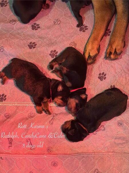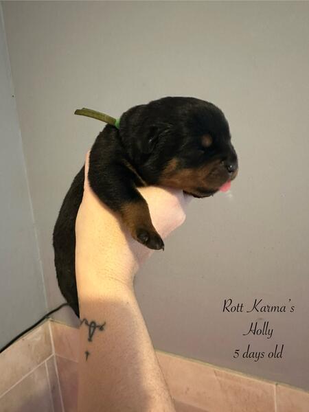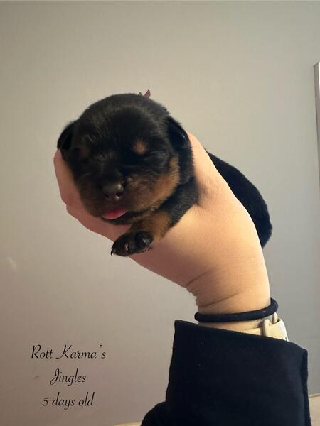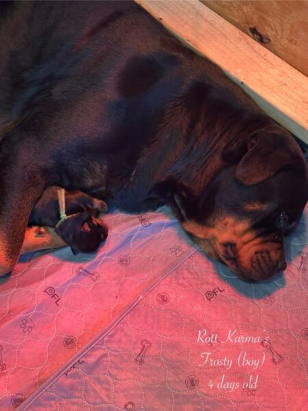 message rttkrm1040 about this ad Purebred Rottweiler puppies born 12/5, ready to go 1/31. Litter of 9, 5 boys and 4 girls. I have 1 girl and 3 boys remaining. Docked tails, will have 1st puppy vaccine, deworming, vet check and AKC papers. Dam has VHMP AKC title and is OFA JLPP clear/normal. All pups are raised in home with other pets and children. Well socialized. Must be able to pick up in Colchester, CT |