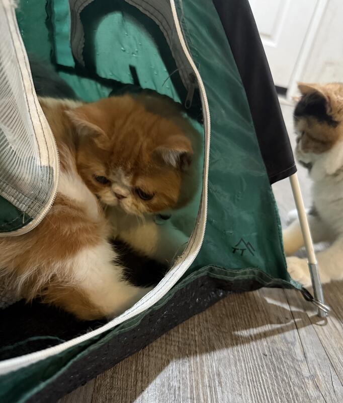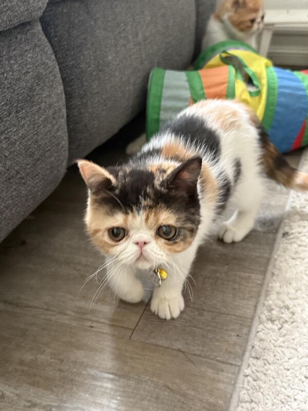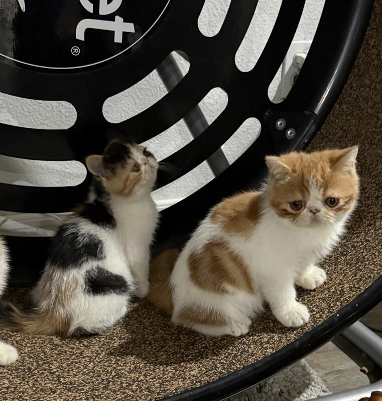 message rport about this ad Three months old, one orange and white male and one female calicos. All Extreme flat face. Dad a red tabby and mom a beautiful calico. They are ready for adoption with their first vaccination and deworming. They eat solid food and are potty trained, well socialized, so well with older cats and small dogs, so playful and cute, they learn to run in a cat weel so fun to see them. Mom and dad extreme flat face and pure breed exotic shorthairs. If you want more info send me a text through this app or text me at (619) 520-7832. |