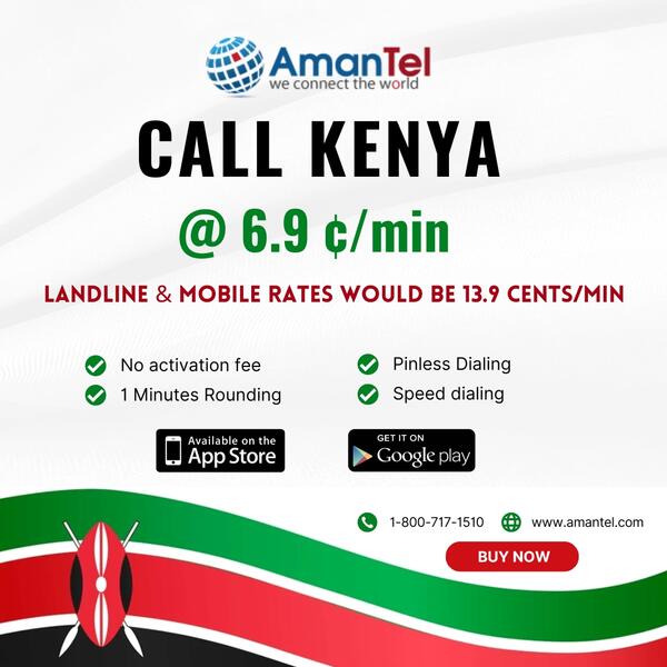 message amantel about this ad Looking for the cheapest phone card to call Kenya from the USA? Stay connected with family and friends in Nairobi, Mombasa, Kisumu, or anywhere in Kenya at affordable calling rates. With Amantel International Calling Cards, you can enjoy crystal-clear voice quality, secure connections, and the lowest per-minute rates for both Kenya landlines and mobile numbers. Whether you are calling loved ones, business partners, or friends, Amantel provides the best calling cards for Kenya with maximum savings and reliability. Trusted since 2002 for cheap international calls, Works from any phone in the USA & Canada, Easy online purchase get started in seconds, 24/7 Customer Support. Buy your Kenya Phone Card today at Amantel.com. And start making cheap international calls to Kenya with confidence. |