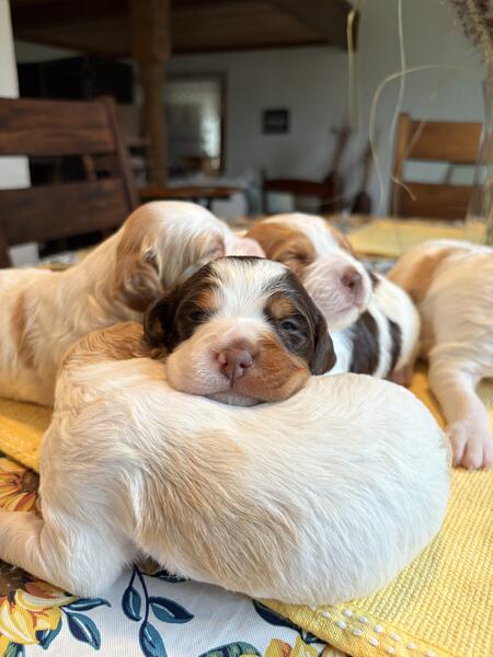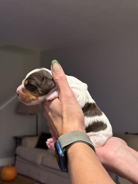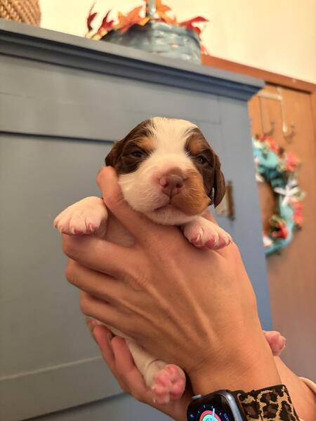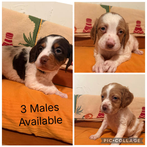 message tammyjones03 about this ad I have 5 purebred AKC Brittany puppies. Mom is orange and white and dad is liver and white. They were born on October 1. There is 4 males and one female. They will have dew claws removed, tails docked, dewormed and first sets of shots before going to their forever homes. Asking for a non refundable $100 dollar deposit to hold your puppy. UPDATE: ONLY 3 MALES LEFT |