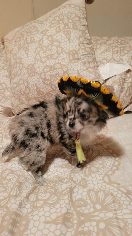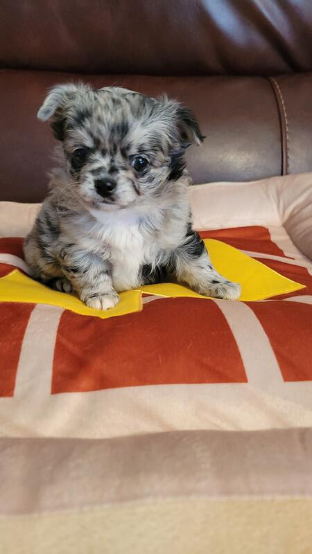 message donbon54 about this ad Luca is a Black Merle male pup. He is a long coat applehead. He is beautifully marked. He is very friendly. His mom is a black Merle & dad is cream color. We are excepting a 500. deposit to reserve him until he is ready to leave in March. He will have three 5-way shots, he will be vet checked and come with a health certificate. Luca also comes with full AKC registration, shot record, toys, bed, & sample of food. We are located in Zanesville Ohio. We are also on Facebook. Bono's Chihuahuas LLC. |