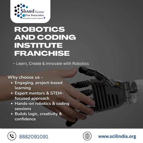 message ankitjalsaventures about this ad Start your own Robotics and Coding Institute Franchise and shape the future of young innovators! Join the fastest-growing robotics institute franchise business in India with hands-on STEM, robotics, and coding programs. Our Educational Robotics Franchise in India offers complete setup, curriculum, and training support to ensure success. With a proven and profitable coding classes franchise in India, this is your chance to be part of a top STEM & robotics institute franchise business in India. Why Choose Shard Center for Innovation ? Proven STEM & Robotics Education franchise opportunity Full training, setup & marketing support Profitable and future-ready business model Nationwide brand recognition "Innovate. Inspire. Educate Join Indias Leading Robotics & Coding Franchise Learn more - httpsscilindia.org/franchis |