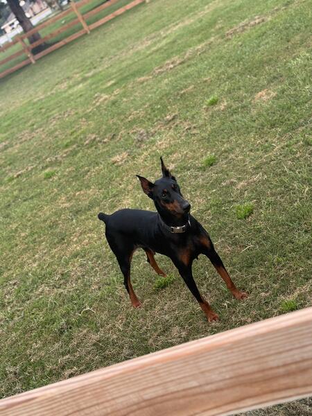 message ctlnsh0406 about this ad She is Akc registered but papers will not come with her. She is 2 1/2 years old and had one litter. We would like her to go to a pet home if possible. She is beautiful and smart and is house trained! Black and tan female with cropped ears! Call or text 252 772 5809. We also have some pups from her last litter available! |