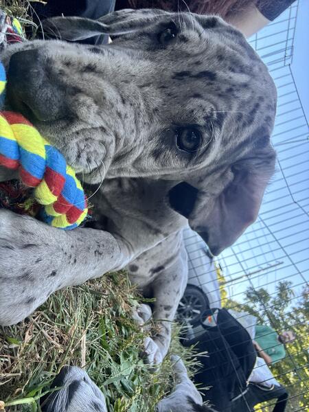message rosemaryelegance444 about this ad UPSTATE NEW YORK (Albany/Amsterdam/Saratoga Area) Female Grey Merle She is properly socialized & potty trained 4 Year Health genetic warranty AKC Registration Vet checked, dewormed, and shots (appropriate with age) Lifetime advisory support for you and your new family member from us. IF YOU WOULD LIKE TO MEET THE PARENTS WE ARE MORE THEN HAPPY FOR YOU TO MEET THEM |