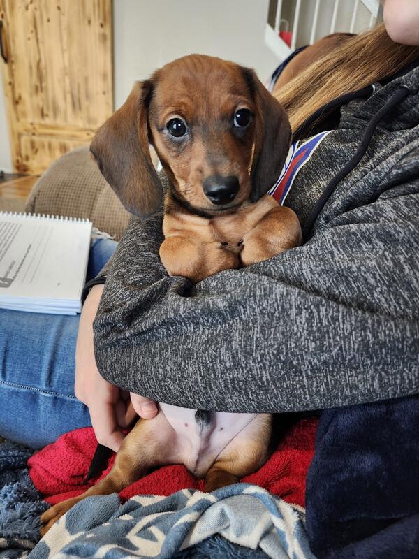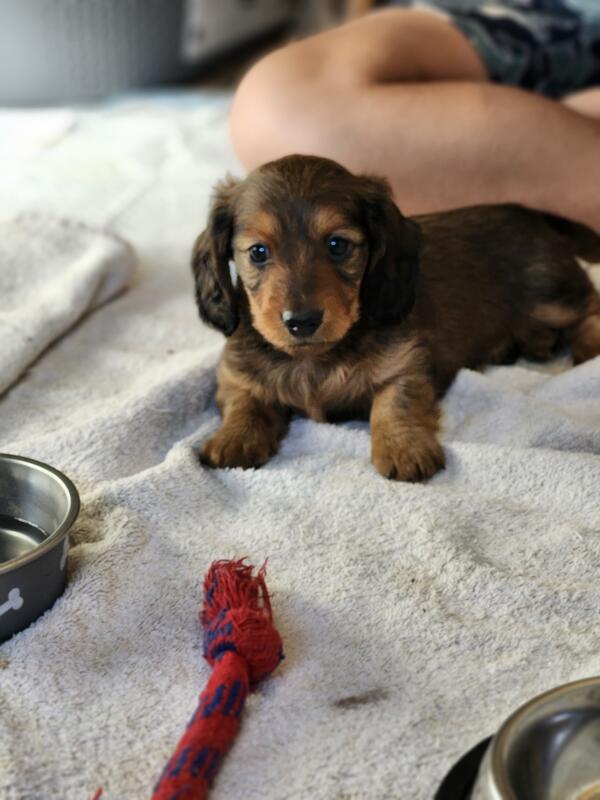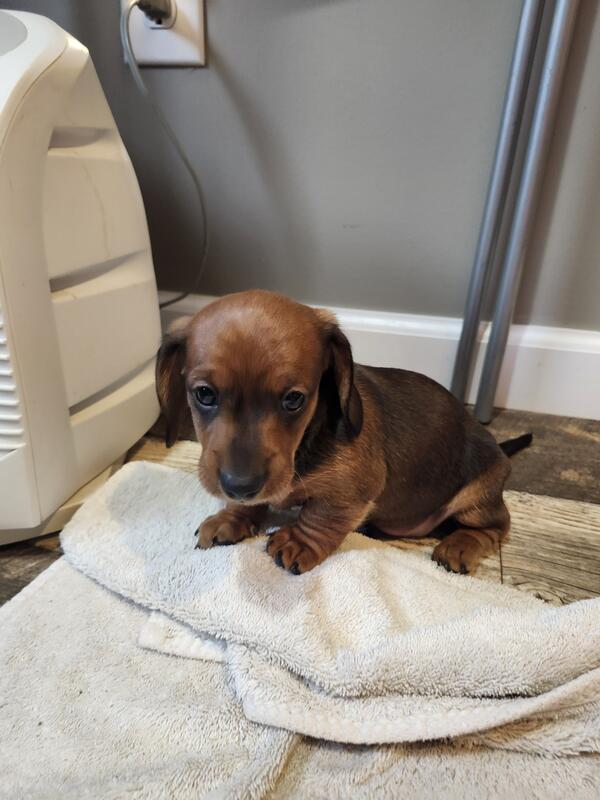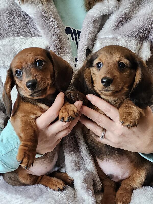 message pjkmmng378 about this ad BOTH SOLD male miniature dachshund puppies - 1 red sable long-haired male & 1 red short-haired male. Puppies were born 10/6/2025 and are ready for their new homes now (10 weeks old Great for Christmas! They have been vet checked and had their first round of shots and dewormer. They are well loved and socialized by kids. Working on potty-training them outside. Dad is red sable medium to longhair and AKC registered. Mom is black & tan shorthair and AKC registered. (3 pics are of parents Parents are on site. We are asking $1,200. Cash only please, no Venmo. They will come with vet paper, AKC paper, and a sample of the puppy food they are currently eating. We are located in Hudsonville, MI (which is in the greater Grand Rapids area Please message or text me with interest or questions. (616) three66-6five37. Thanks! |