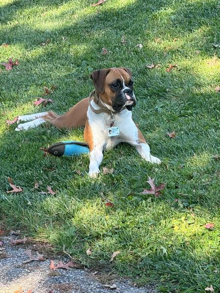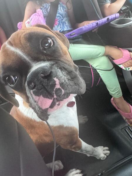 message junyto about this ad Hello, I have a 1.5 year old boxer, she is spade and has all of her vaccines. She is great with kids and other small animals. |