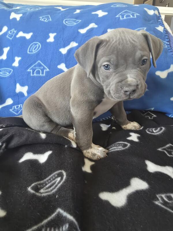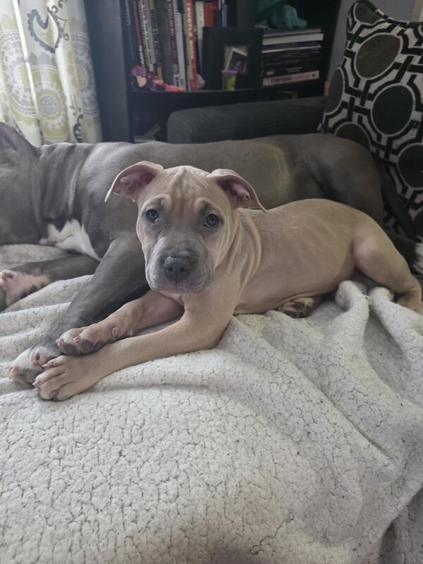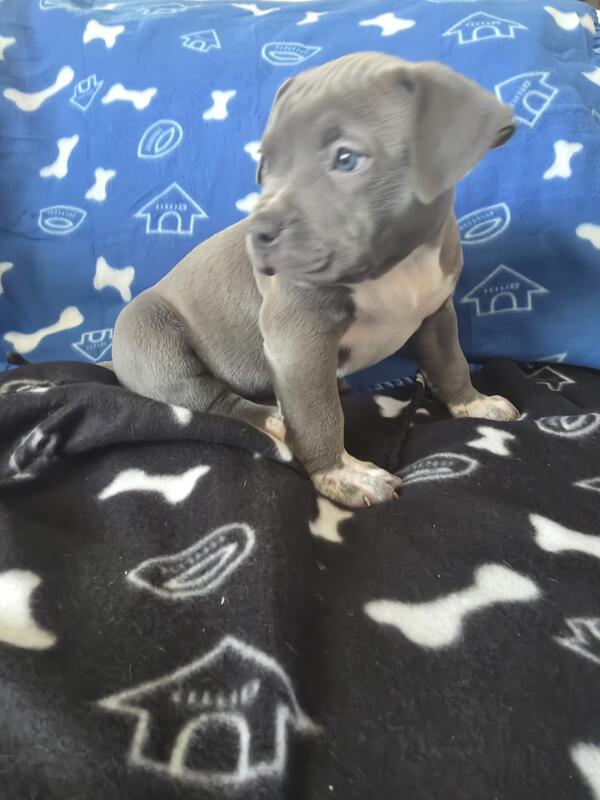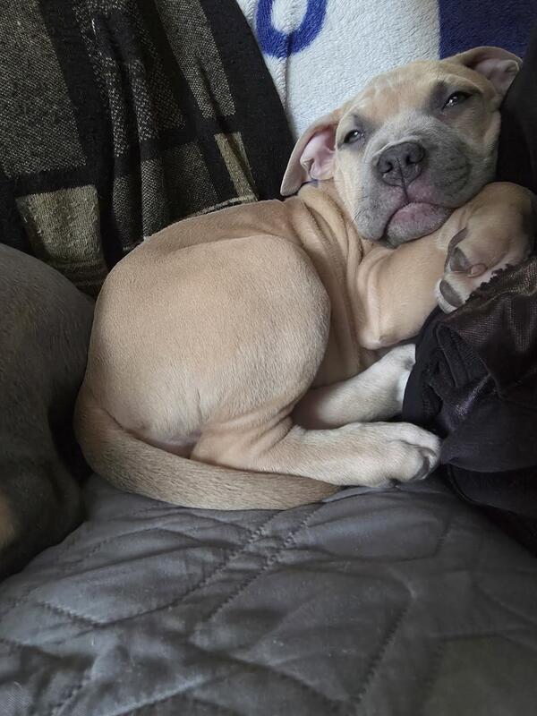 message dreamlarge about this ad 2 pups available 1 male 1 female. Abkc registered American Bully pups born Sep 26th. From Dreamlargebullycamp.ca. Mom is blue/grey, amazing temaparment loves people. Dad is Abxl bully bloodline. All pups come with abkc papers, first and second shots shots and deworming as well as 30 days free pet insurance and bag of food. Call or text 587-227-9947 pups are 12 weeks old and can leave anytime. Male is blue white female is fawn |