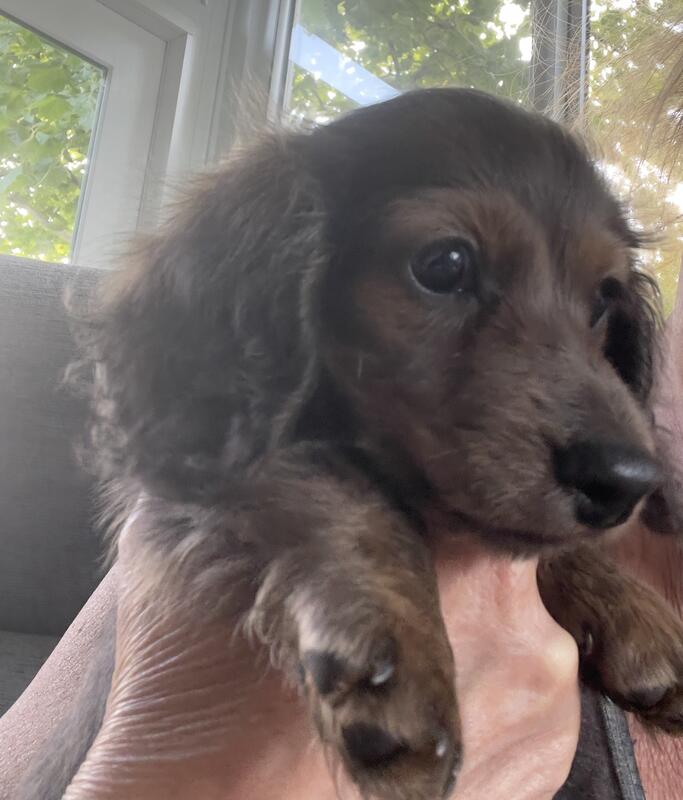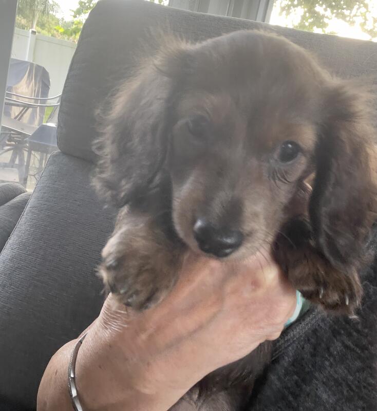 message traceylk621 about this ad Sweet super tiny long haired blue brindle female AKC mini dachshund! She has her Florida Health Certificate and two rounds of shots! She just turned 14 weeks and looking for her perfect human in a pet only home! I have both her parents in my home! Please call Tracey at (904)502-8210 |