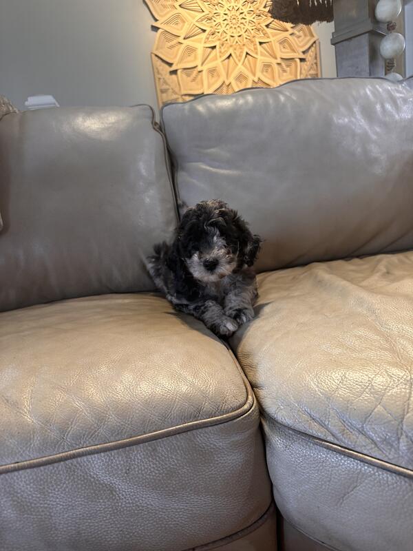 message manifold6 about this ad - Moyen Poodle puppy. Parents are AKC but puppy will come without registration. Mom is a beautiful blue Merle and Dad is a white/creme. You cant get a nicer size than Mom and Dad! Both parents are very petite. They are perfectly proportioned. Mom and Dad have the ultimate personalities: loving, attentive, fun, cuddly, and they adore people. This puppy is GORGEOUS- her coloring is amazing. She has a very nice demeanor - playful but not hyper at all. She has been raised in our home - not in a barn. Very socialized and around people all the time. This is a really great puppy! |
