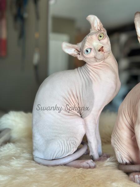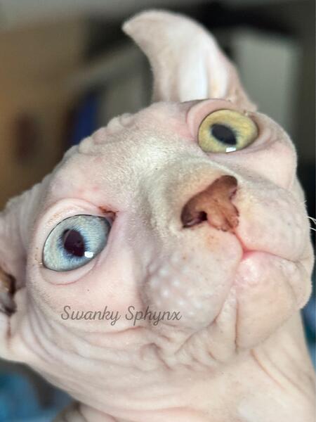 message swankysphynx81 about this ad Blue bicolor elf girl with odd eyes. DOB June 7th 2024 Parents HCM screened, DNA tested, Felv fiv tested. All kittens are vetted. Swankysphynx.com Pick up in New Jersey Price is pet only. |