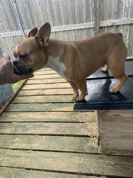 Female French/English mix almost 2 years never been bred. Sweet personality non aggressive