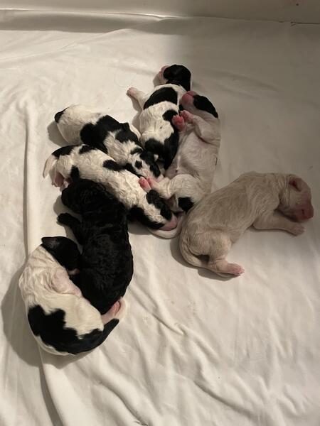 message stacyb about this ad Ready September 11,2025 Double Doodles Mom is a black Goldendoodle and Dad is a black and white parti Labradoodle Puppies will come up to date on vaccines and have vet health certificates I have references from past pups and can provide current pics of past pups. Both Mom, Dad and all puppies are raised in our home. |