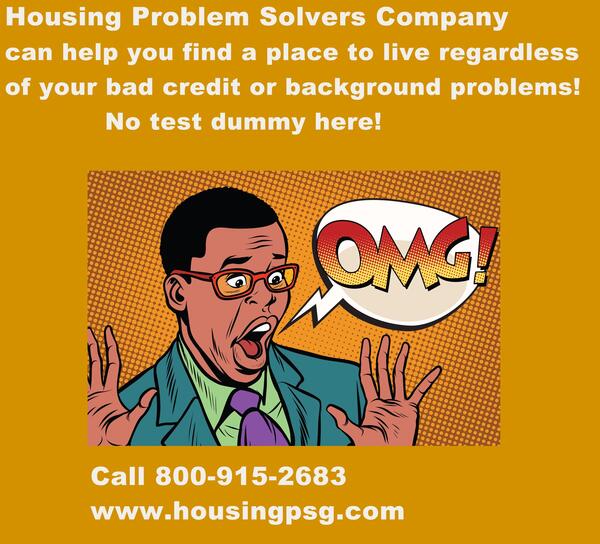message housingpsg about this ad Bad Credit or Criminal Background Renters. Stop paying to have your rental application rejected. If you have bad credit or a criminal background Housing Problem Solvers Company can find you a place to live. Call us at 800-915-2683. www.housingpsg.com |