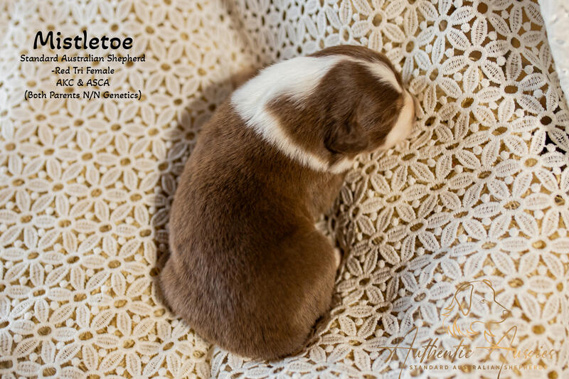 message authenticaussies about this ad We are a dedicated, family-owned breeder proudly located in the charming town of Red Bud, Illinois, where excellence in Standard Australian Shepherds has been our passion for over 15 years. Our dogs are truly part of our family, and we take great pride in thoughtfully selecting our breeding pairs with a strong emphasis on health, sound temperament, natural beauty, and affectionate, family-friendly personalities. Our puppies are dual-registered with both the AKC and ASCA and are raised right here on our farm. From day one, theyre surrounded by horses, cows, cats, andmost importantlychildren. This hands-on, real-life environment helps our puppies grow into confident, well-socialized companions who are ready to seamlessly join their forever homes. As adults, theyre expected to weigh between 4050 pounds. Before going home at 8 weeks of age, each puppy will receive their first round of vaccinations and have their tail docked and dew claws removed. Both parents have completed full genetic testing with completely negative panels, giving you added peace of mind. The photos above feature Mistletoe, a beautiful Red Tri female born on December 20th, 2025. Shell be ready to go home just in time for Valentines Daywhat a perfect way to add a little extra love to your life. Our puppies are often reserved within the first few weeks, so dont wait. If youre interested in welcoming this sweet girl into your family, wed love to hear from you. Visit us at www.authenticaussies.com to learn more or to get in touch email us at [email protected]. message authenticaussies about this ad |