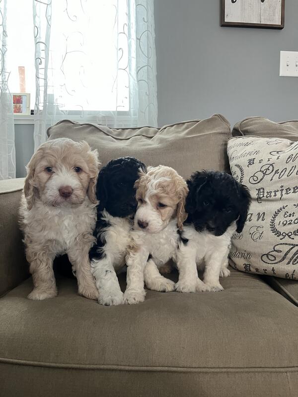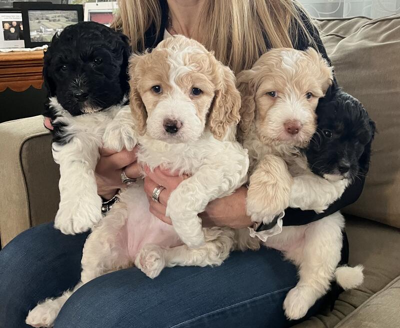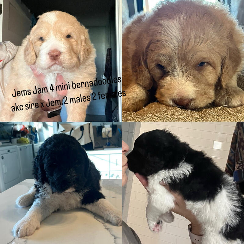 message the3jspuppies about this ad We have mini two medium size Bernedoodles three of four are left due to go to their forever homes on March 7. They will be between 35 and 45 pounds eating partying and playing and being very well socialized they are loving and cuddly as ever. |
