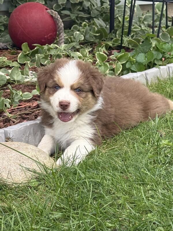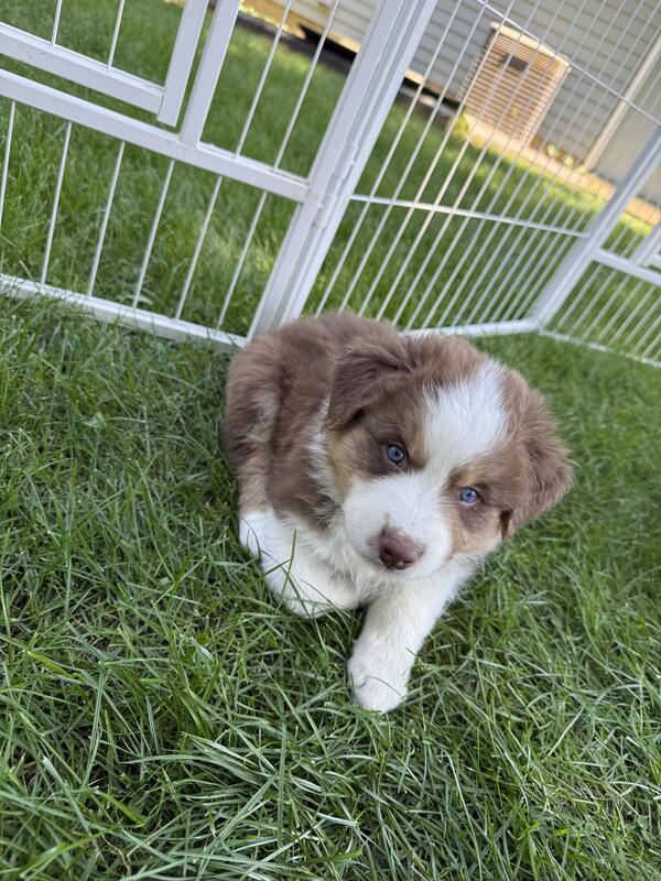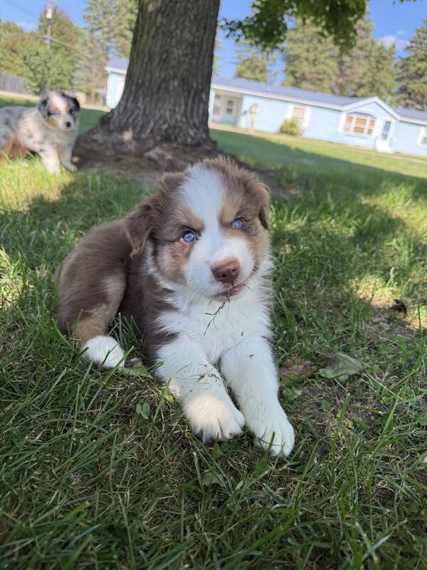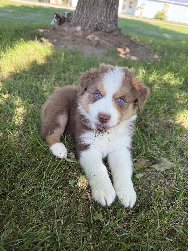 message whitetailaussies about this ad AKC Aussies Born 7/23/25 Ready middle of September! 1 boy left! 1 red tri Very beautiful, heavy guys! Mama is White-Tails Chasing Faith Vera Blue eyes, 45lbs, health tested. Double registered (working on triple OFA hip/elbow's good/normal Has been introduced to flyball and starting agility! Sire Our Family Tradition Hank Williams JR Blue eyes, 50-55lbs OFA hip/elbows good/normal Working dog! |
