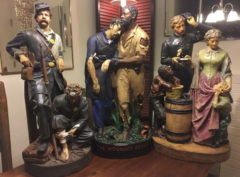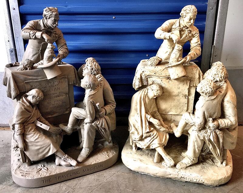 message jhnnmrco7mh about this ad Listing today an extensive sculpture collection of John Rogers (34pieces) total between statues and three Victorian Pedestals 1859-1899 primarily Civil War subject matter. Includes 4 Councils of War with two variant A and one B variant ,one C variant plus a fabricated Council with just Lincoln figure into a Juno oil lamp.includes two Traveling Magicians(one of the rarest Magic collectables in the world seven Last Shots; Fugitive Story; early Checkers&Schoolmaster ;Mailday&Postoffice groups and much much moremore photos are available please inquire. Pick-up only in Worcester Massachusetts priced at $39,999.95 or Best Offer COD without return,refund.or exchange. FYI any of the groups of statues can be purchased separately (except MailDay,PostOffice,2 Magicians) some are in 3 statue sets please inquire for your collection. For your best value buying the entire collection is the best deal. Very difficult to amass these Groups today as most are in generational pass down collections not for sale. Amazing collection and the only extensive collection publicly being offerred. Perfect for the parlor, home or office library or for the curator outfitting their museum. This seller can assist with the careful safe loading of the collection into your vehicle if desired. Would need a large van and approximately 20 cushioned blankets. Thanks for looking. message jhnnmrco7mh about this ad |