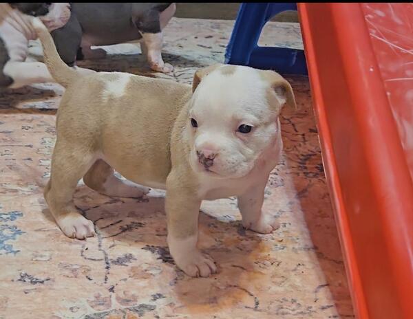 message phllp0744 about this ad Healthy adorable champagne merle female. UTD with health certificate. She's going to be a tank for sure. Short wide and solid. |