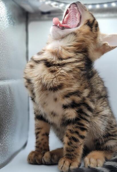 message nalabengal88 about this ad Meet Teddy, the laid-back Bengal kitten with a fluffy, glittery coat and the sweetest temperament. True to his name, Teddy is like a teddy bearsoft, comforting, and always ready for a cuddle. Hes incredibly docile, and if you didnt know he was a pure Bengal, you might think he has a touch of Ragdoll in him. Teddy loves a relaxed lifestyle and is more of a homebody than his adventurous siblings. Hes the perfect companion for anyone who enjoys quiet, cozy dayswhether youre watching your favorite shows or simply relaxing, Teddy will happily rot away with you all day. If youre looking for a kitten who brings a calm, loving presence to your home, Teddy is ready to be your loyal cuddle buddy. Health guarantee, up to date shots and health certification, Father is TICA registered, both parents have been genetically screened showcasing pedigree and a clean bill of health for 49 genetic disorders tested for. Based in NJ can deliver to nearing parts of PA, NY, and DE. Please text me at 856-469-9977 if interested or want additional information message nalabengal88 about this ad |