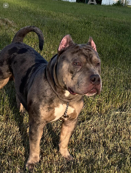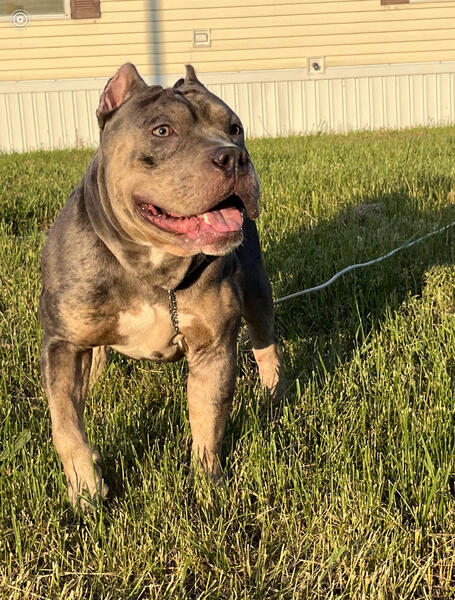 message dvdrjh7990 about this ad 2yr. Old Tri-Merle Stud! Blue Steel! Brother of HERSHEY-BLOODLINE: Louis V + Magoo + Prettyboy + 4 X Dax! Blue is a very loving and playful Dog, Great with children, Temper: Mild mannered, protective over loved ones if harm is sensed! Son of BRANDOK From PaccBullys Kennels! $1000 STUD FEE Or $500 With First Pick Pup Back (Depending on the right Female) (Pricing May Change according to location) |