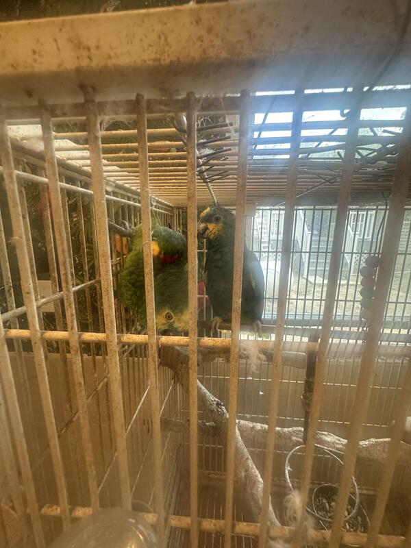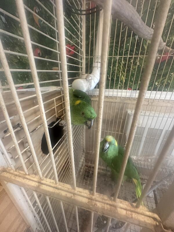 1 Pairs of Yellow Head Amazon, 1 yellow head Amazon, 1 African Gray and 1 pink Galah, 5 parrots, take them all for one price.