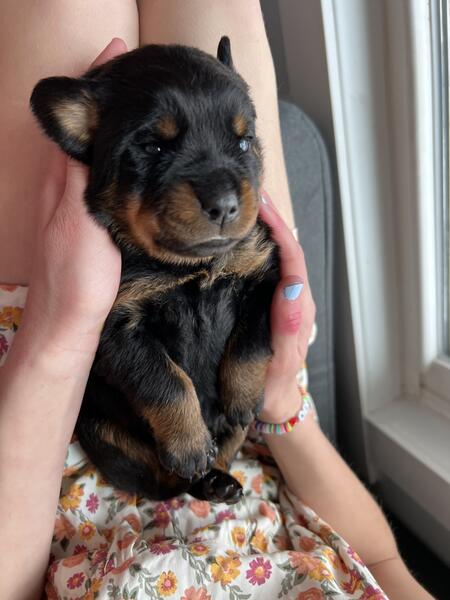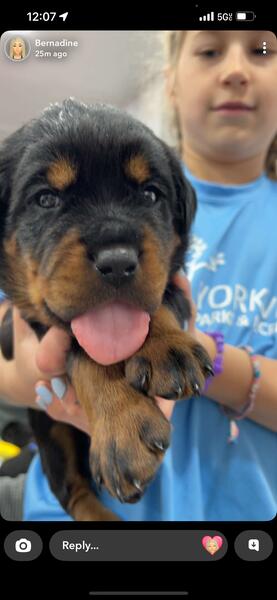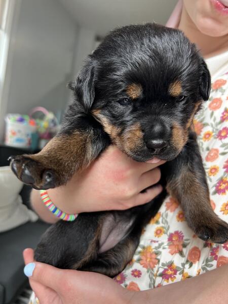 message svnnhl5601 about this ad Puppies born 3/29/25 AKC registered, champion bloodline Docked tails, dewclaws, dewormer, & shots will be done. My parents own Winding Brooks Rottweilers. They own the male we bred with our girl. Kane, their dog is HUGE but a big teddy bear. Hes 120 lbs. Has a great temperament. Our girl is a wonderful protector, obedient, and amazing with kids. Shes 90lbs. I might be a bit biased, but shes the smartest dog Ive ever met. 63zero 96two 675nine |