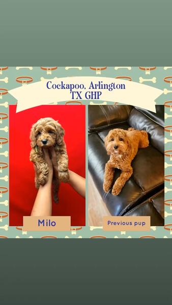 message celia about this ad Milo the cockapoo. He is 75% Poodle 25% cocker spaniel. He is fully vaccinated, comes with 1 year health guarantee, 30 days health insurance, and his CKC registration form. Details in the contract. Asking 1200. Message me for more information. Thank you! Six82-777-19five7. |