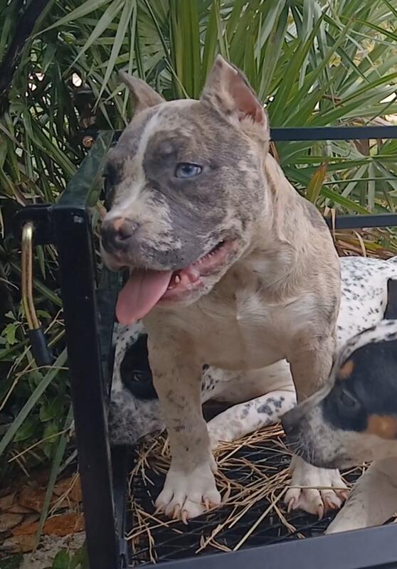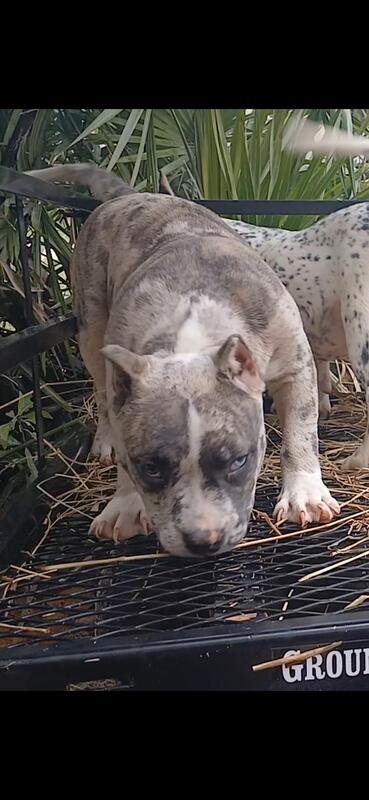 message gonefishin about this ad Beautiful Brindle Merle Pocket Female ABKC papers and Florida State Health Certificates in hand. Ears Cropped Check out my Facebook BullKat Kennels 352-507-1291 |