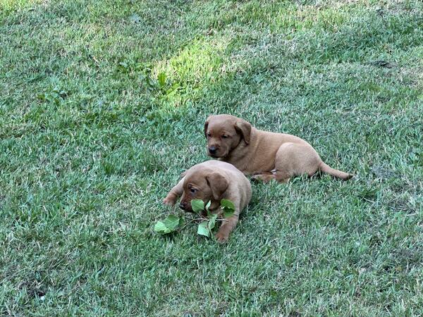 message jdavisjr about this ad Fox red lab pups, parents AKC registered and both had the Embark test done, and will have first shots before going to their forever home. Pups are eating solid food love playing outside and children. Will be partially house broken and getting them used to firearms if they are wanted for hunting. Message for more details. Also puppies are located in Linwood MI. Call or text at 989-493-8417. |