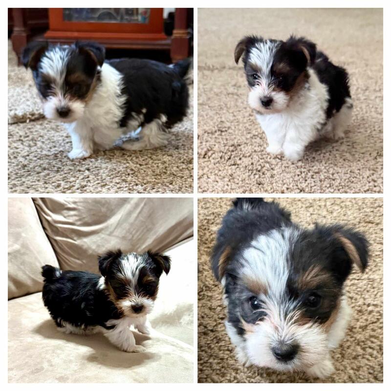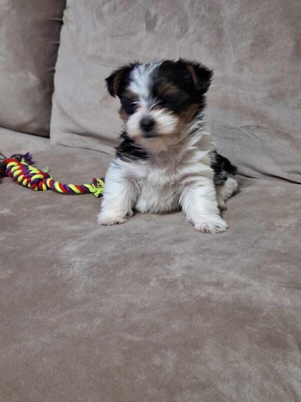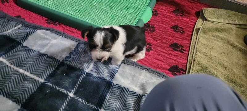 message lgrantbutton about this ad I have 1 Parti Yorkshire Terrier male puppy. He was born on January 11th, 2025. He weighs about 1 1/2 lbs. right now. His mom weighs about 4 1/2 lbs. and his dad weighs about 5 1/2 lbs. I have both the mom and the dad, and they are both very sweet and loving and their temperament is exceptionally good. The puppy has his tail docked and his dew claws removed. He will be up to date on all of his shots and vet checked for health. He is good with other dogs and cats. He is very playful and loves everyone. He is a cuddler. He will be ready to go to his forever home on April 20th, 2025. If interested, please message me. Text me or call me. You can also email me at [email protected] |
