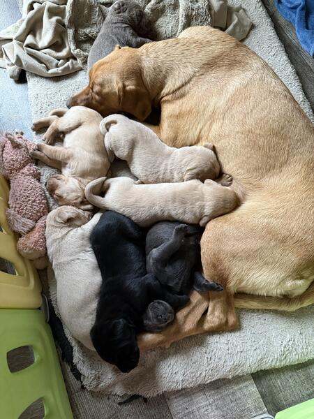 message ohioishome24 about this ad We have 7 puppies, 6 male and 1 female. The female is the second lightest of the lighter champagne colors. There are 4 total of the white/yellow color, 1 black, 1 gray and 1 charcoal. Both parents are our family dogs. Puppies have had their dew claws removed, shots will be UTD, deworming, microchipped and very well socialized! Both parents are AKC registered and the puppies are as well and will come with all the paperwork. Mom is fox red, dad is charcoal. We will take a $200 deposit with remaining due when they go to their new homes. We are located in Chillicothe Ohio, we are happy to arrange a time for you to come visit them Feel free to email or text at 6 one 4 six six eight, 3 six eight 3. |