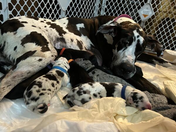 message bksmth7459 about this ad I just had 2 litters of Great Dane puppies born this week. One on Aug 26 and one on Aug 30. All puppies will have dewclaws removed, age appropriate shots, dewormed at 2,4, and 6 weeks, and all will be microchipped. If you are interested in a sweet baby please send me a message. These wont last long. Very beautiful colors. |