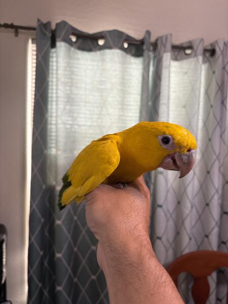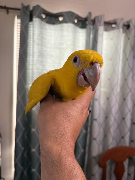 message lilipadwingzz about this ad I have a super sweet male golden conure 9yrs old , very friendly . You can hold and pet him. Hes ok with men and women and kids too. He doesnt bite. His wings are clipped. Beautiful feathers: with dna and pbfd and polyomavirus disease tests negative. $3500. No cage. Willing to meet for a reasonable distance Or I can deliver for a fee |