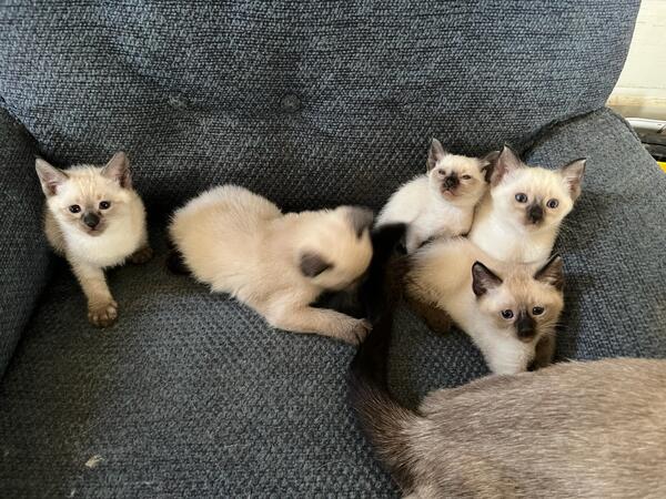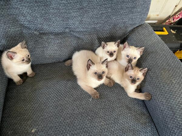 message relaine46 about this ad I have 5 seal point males kittens. They are 21 weeks old ( 5 months They are very lovable and playful. They are litterbox trained and are eating Purina Kitten Chow. Mom and dad are on premises and are my babies. For more information please text or call 774-253-1917. Thank you for your time and I hope you have great day. |