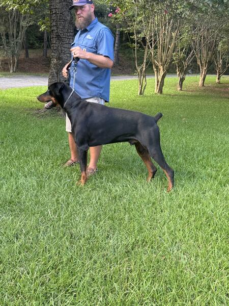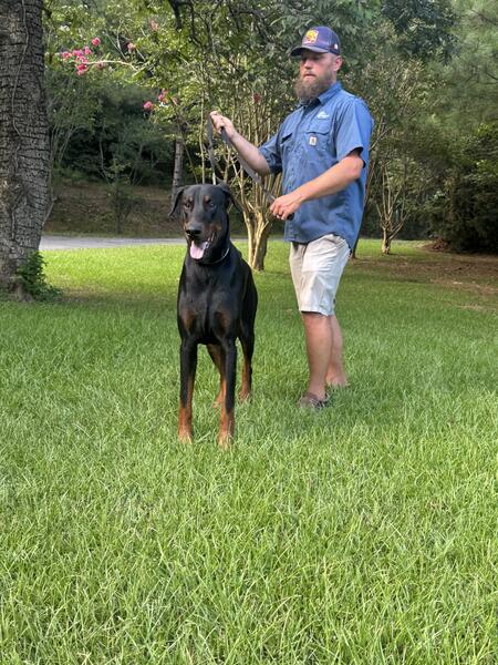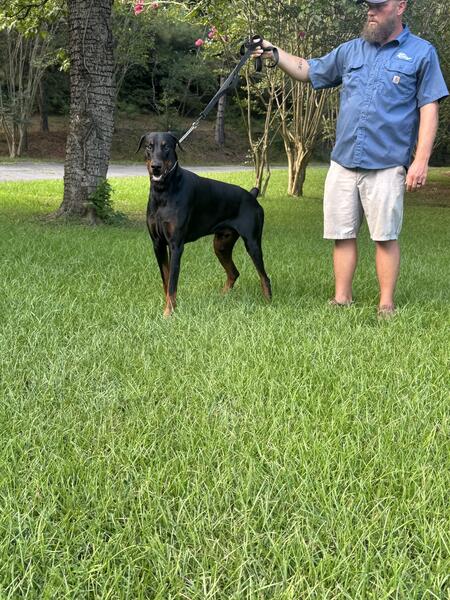 message stckhzb3153 about this ad AKC Male Doberman 2 yrs old Very loving and sweet boy. He has been raised with many dogs and kids. He has had his ear cropped but previous owner did not tend to them correctly and they now lay down. His tail has been docked as well. He needs a plenty of space and someone who will be able to give him the attention he deserves. He is crate trained. European imported parents. Only serious inquires only please. Located in Cherokee County, Al. Text or message: Wesley 256/557/2467 |