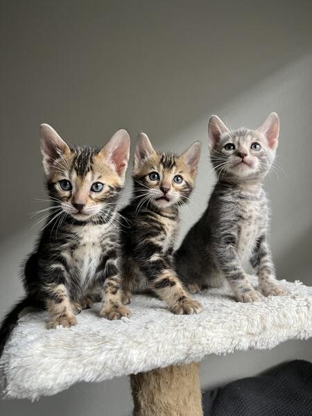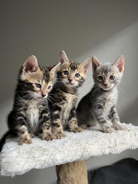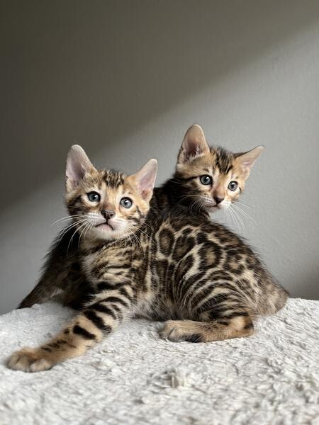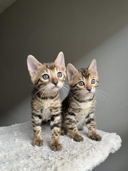 message julvidrio about this ad Adorable, playful, and full of personality! These Bengal kittens are 8 weeks old with stunning marble and spotted coats that give them a unique, wild look. Raised in a loving home, well socialized, eating solids, and litter trained. ~3 females and 1 male available~ |