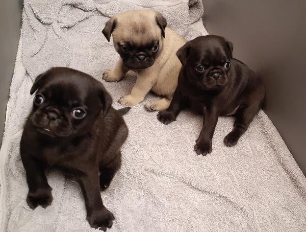 message pugtastic1962 about this ad Greetings to all Pug lovers I have 2 beautiful puppies available. They were born on July 18th. 2025 . They are ready for their precious forever homes ! Parents are AKC and ACA registered . They have had their 1st. shots and are dewormed. One black female and one fawn male available now. Thank you all |