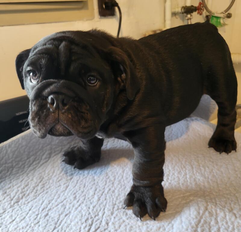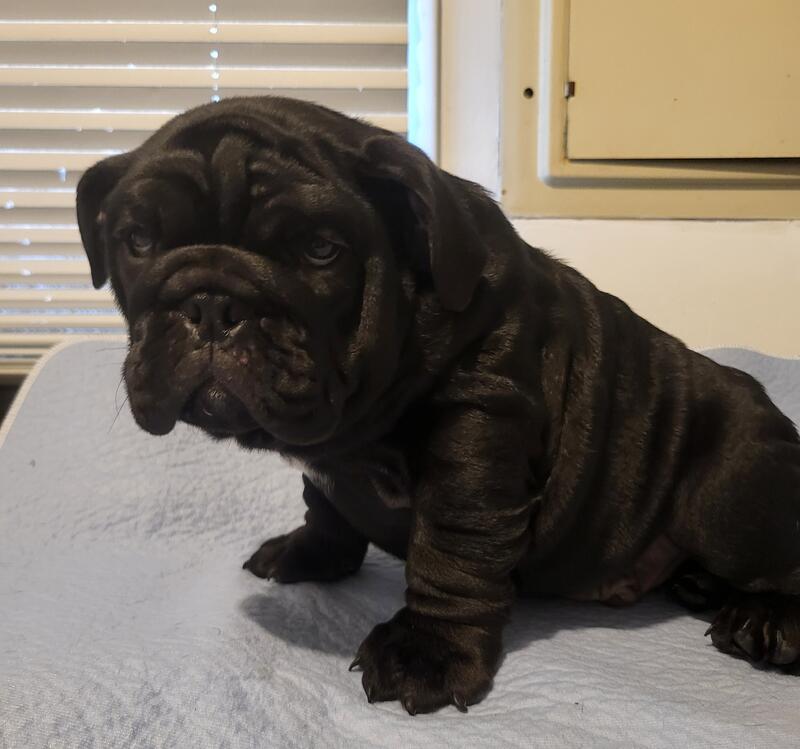 message muscovy about this ad This is Amos he is a black english bulldog. AKC registered, he is up to date on vaccines and vet checked. Dad is black as well and mom is a blue tri. Both are pictured as well Located in Foster, Ky. Message for additional info and price. |