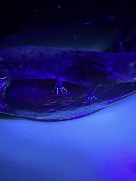message stphl8996 about this ad Rare axanthic axolotl with a glowing facemask and toes under a black light. As babies they have a purple tint to them. Now when light hits them their bodies look sapphire blue! Their bodies look silver with dark gray spots. I accept PayPal Goods & Services which gives you buyer protection. I accept other forms of payment as well. Shipping is available. |