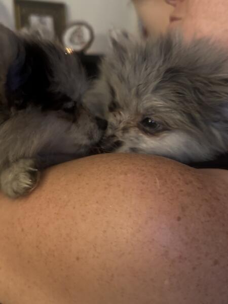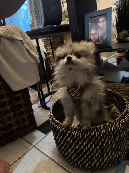 message raffenbiddy about this ad Sweet & Silly Rare Merle Pomeranian Puppy Ready for Her Forever Home Meet our little fluff ball a rare Merle Pomeranian girl with the cutest personality to match her stunning looks. Shes sweet, silly, and full of charm. Training: Currently pad trained and now learning to go potty outside since shes had her parvo shot. Social: Loves to cuddle and has been socialized with both small and large dogs. Eating: Happily eating hard food like a big girl. Unique Look: One brown eye, one blue eye her gaze will melt you. Health: Vet-checked and cleared of common Pom health issues. Parents: Mom is an AKC-registered tan Pom; dad is a Merle Pom (not AKC but proven 100% Pom lineage Shes a happy, healthy little companion who will bring endless cuddles, laughter, and attention everywhere she goes. Serious inquiries only rehoming fee applies. Located in Reno, Nevada Delivery/meet-up available for the right family 7754443355 call or text . message raffenbiddy about this ad |