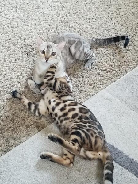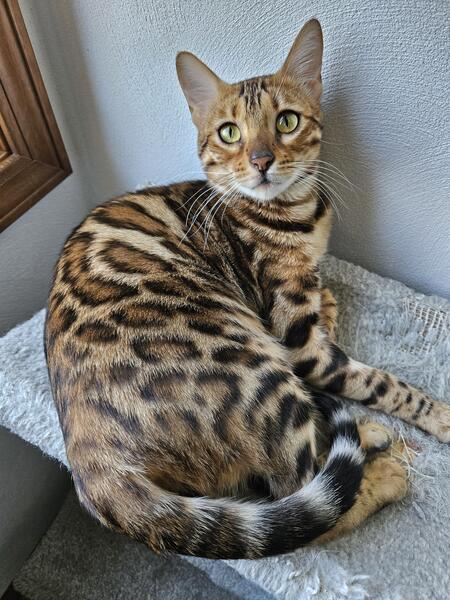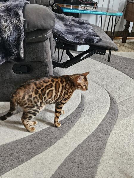message rosedust about this ad I have a Rossette Spotted Bengal Female with glitter coat! Available. TICA REGISTERED and spayed, 1 year old. Appr. 9-10 lbs, Hypoallergenic. Her name is Precious. She was the pick of the litter, I held her back for Showing purposes, but realized I won't have time for this unfortunately. She is friendly and loves to play, likes treats, and will sit in your lap. Mom is a Snow Lynx Bengal and dad is a Silver Brown Bengal with Russian bloodlines. She will go home with Tica papers, food, toys, and a blanket. Any questions text or call between 9am and 9pm. 616 seven zero six two seven two nine. |