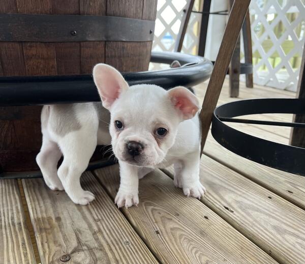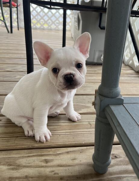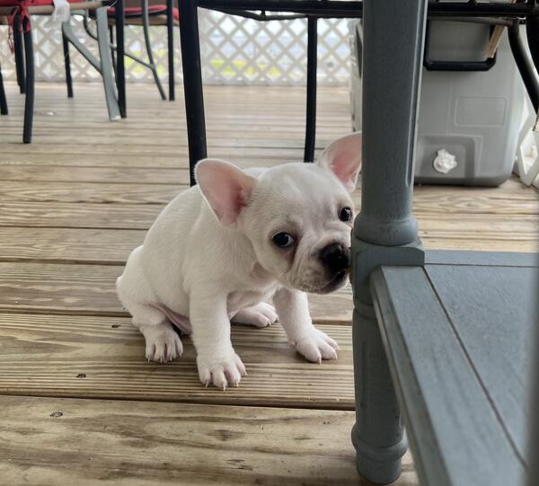 message beeahch about this ad 1 FEMALE LEFT Frenchies born on July 18, three females and one male. Parents on site, mama is a blue fawn and daddy is a cream. Mama is about 24 pounds and daddy is 37. I have two white females left. Puppies will be ready for their forever home September 13 now taking deposits. |
