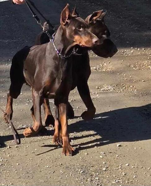 message coniehojo about this ad Whispering Winds European Dobermans is proud to announce planed breeding of Killion Von Whispering Winds and Teja Arya Delnasi. Both are from a long line of eilte working lines full of champings and international champings. They are both heath tested. Puppies will have tails and dewclaws removed. AKC Registration, Veterinarian health records, Age appropriate deworming and vaccinations. All puppies are raised in home and socialized with children and other animals. There is a waiting list deposit fee. I will only have six people on my waiting list. First pick female puppy is reserved from this litter. First pick male puppy is reserved. |