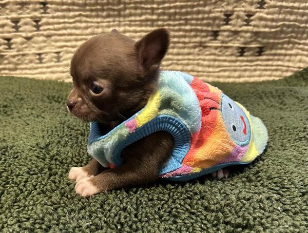 message chilove209 about this ad CKC reg female Chihuahua will come with 1st shot , vet checked, wormed , papers and one yr health guarantee. She will be 4.5 to 5lbs. Chocolate female apple head (Diamond) is $2700 serious inquiries only. Deposit is $500 through pay pal. Balance due when puppy goes home. Deposit is non refundable unless the puppy dies in my care and I am unable to provide you a new one within 90 days. Both parents are DNA and health tested and cleared.Photos listed will be current and up to date. |