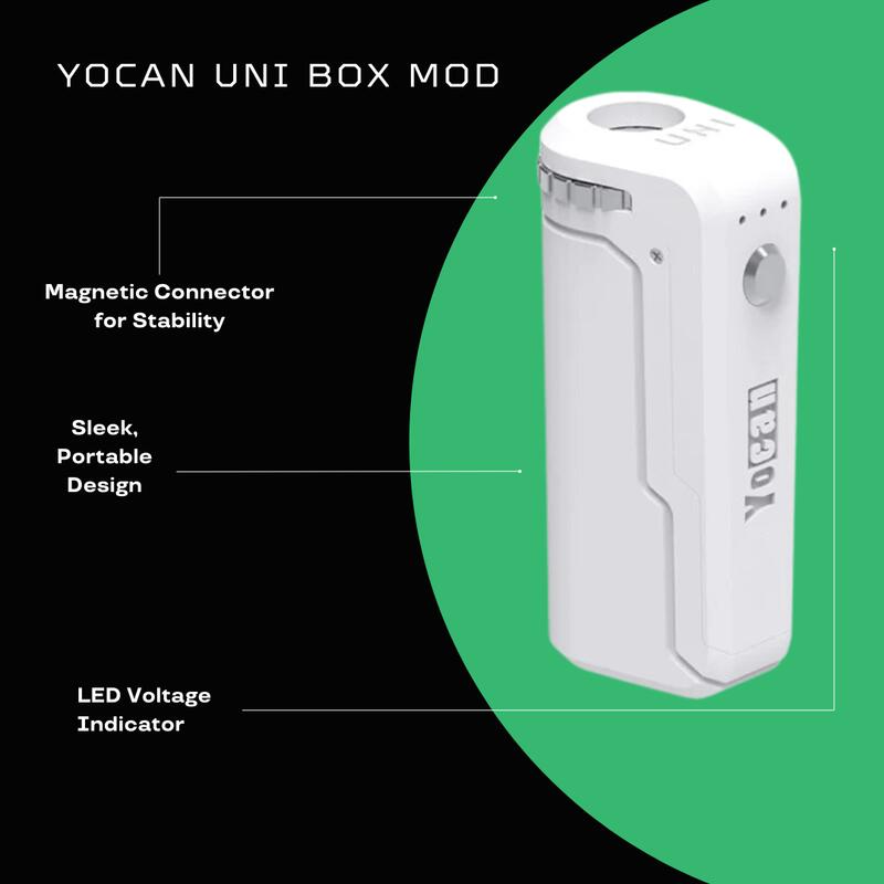 message cannygorilla about this ad Say goodbye to cartridge size woes! The Yocan Uni Box Mods adjustable aperture and universal compatibility make it the ideal choice for all your vaping needs. Featuring easy magnetic loading and a stylish design, this box mod combines innovation with convenience. Order now to experience the Yocan Uni advantage! |