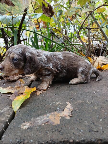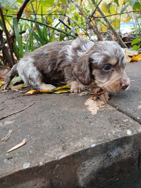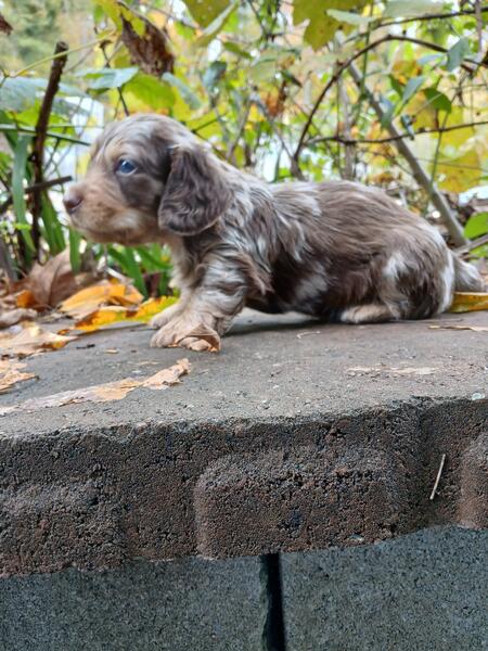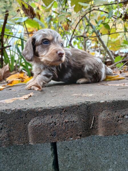 Akc Full Breeding Rights Chocolate & Cream Dapple Cream Point Long Haired Miniature Dachshund Male -- 2750.00