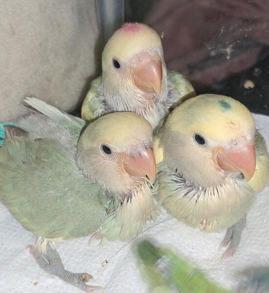 message katz about this ad pied colors and greens blues and yellow lutino color the pied and other littles are being handfed right now not dna tested and the yellow one is a year old dna tested female she was handfed hand tame but will need to gain trust again with some one if interested please call or text 304 820 5107 and i will not ship birds you must pick up in person only |