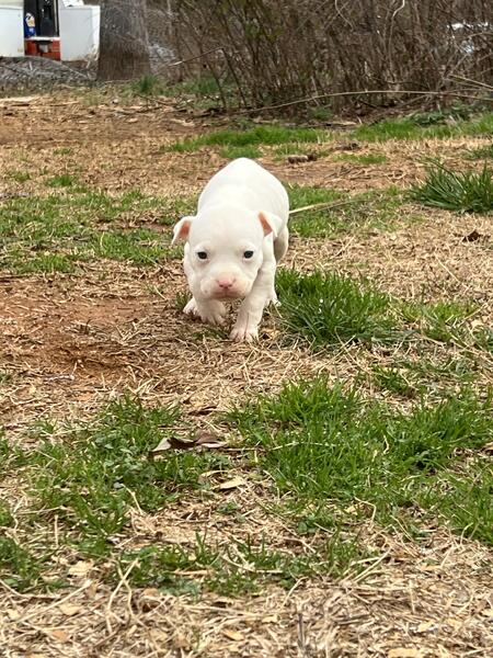 message mfeaster about this ad I have one puppy left from this outstanding litter. Shes a pure white female. The mother is a standard bully. The father is a XL bully. Willing to work a price, contact me if interested (864-251-3906) |