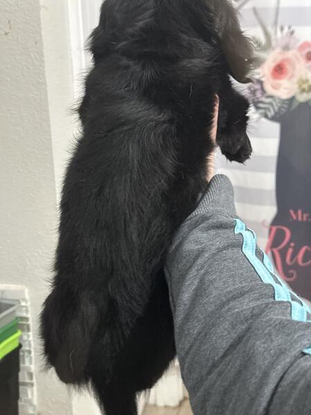 message trich4 about this ad 11 week old female mini long haired dachshund! All black haired, rarest color! She is up to date on deworming and shots, she weighs about 4lbs Shes a very sweet fluffy girl who loves attention and loves to cuddle Text me at 352-419-9799 if you are interested. |